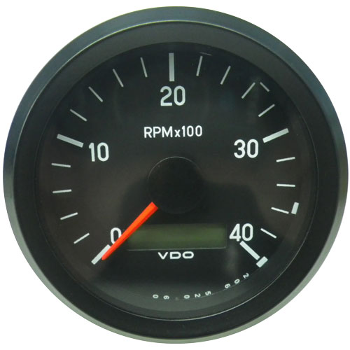 VDO Cockpit International Tachourmeter Electric 0-4000 rpm 80mm 12/24 volt Black Flood Lit Dial Black Bezel